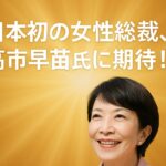 日本初の女性総裁、高市早苗氏に期待!の文字に、女性の顔が載っている画像